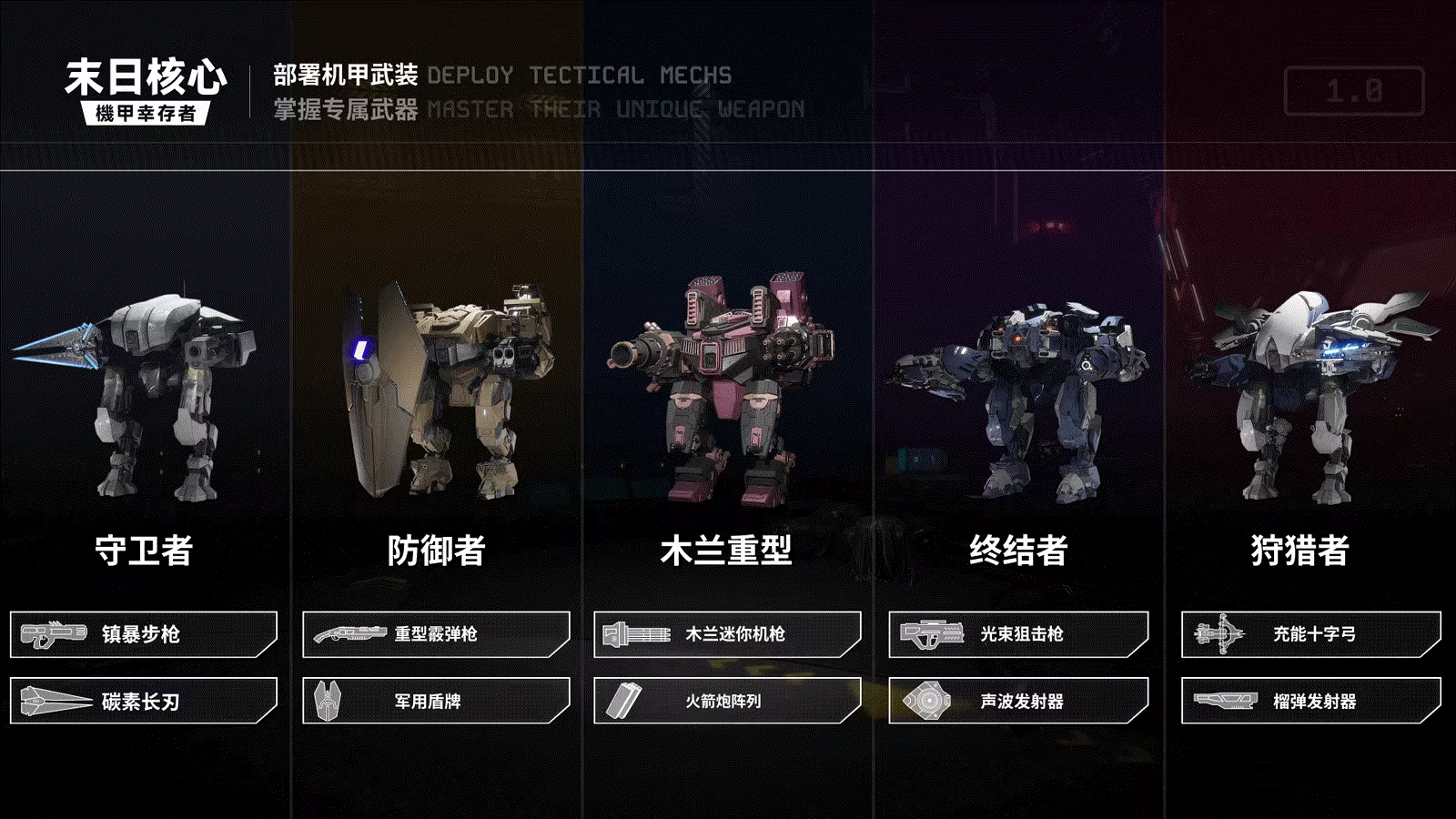 ◆ 4 台装备——不同特性的武器机甲
