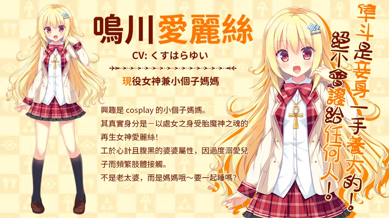 《缘结甜只~My Sweet Goddess~ 》是由ALcot开发的奇幻设定下的日常轻松向视觉小说。 这是一个关于魔神转世体与女神系妈妈、恋爱脑的黑道千金、笨手笨脚的班长、单纯的狗耳少女的日常纯爱故事!