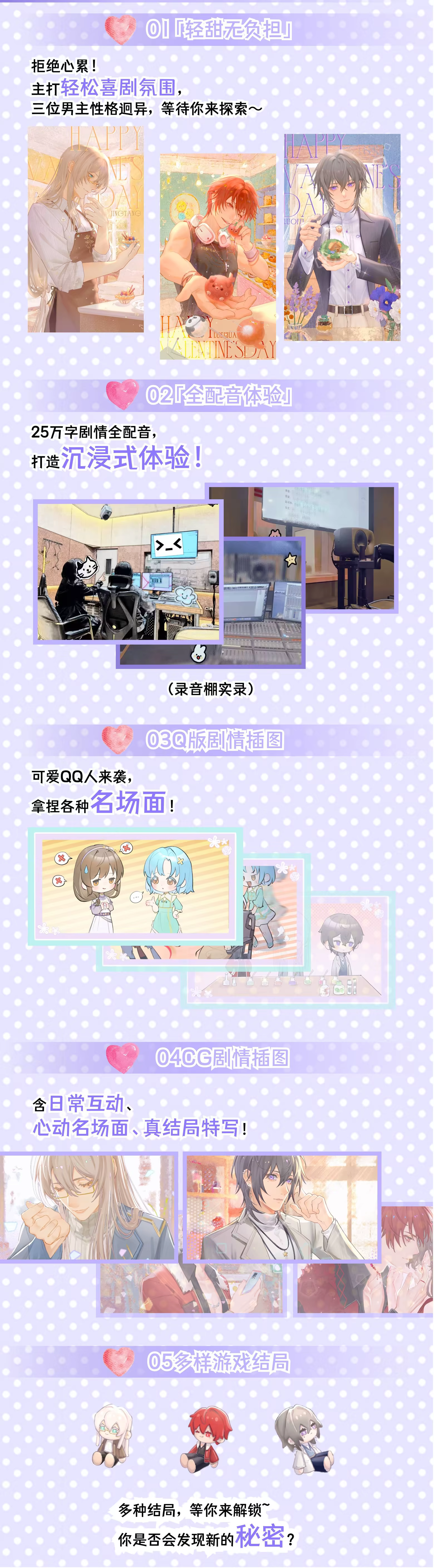 ·多达21种结局(锁线达成三位男主TE后,重新开始游戏即可解锁)。