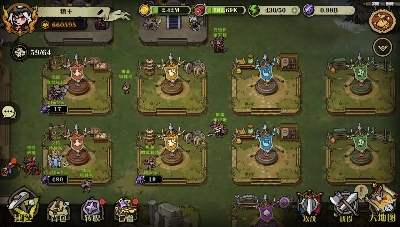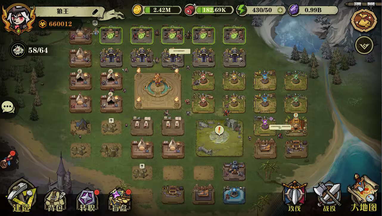 资源与成长:建筑升级、狼人训练和经验都需要合理管理资源,形成完整的成长周期。
