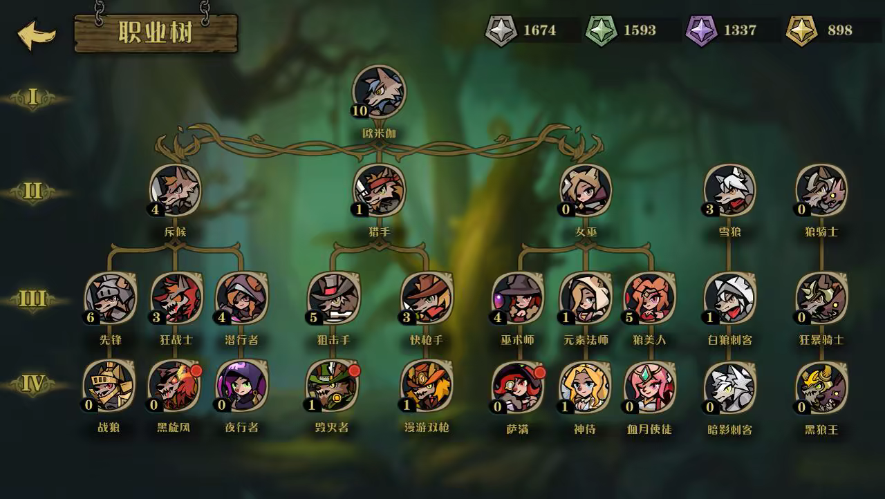 职业系统:游戏有四级职业体系,第四级职业有10种。所有的狼崽都可以成长为第四级职业。