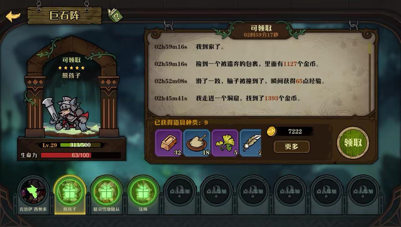 历练系统:玩家可以派狼人到巨石阵体验,通过体验获得体验、道具和资源奖励。